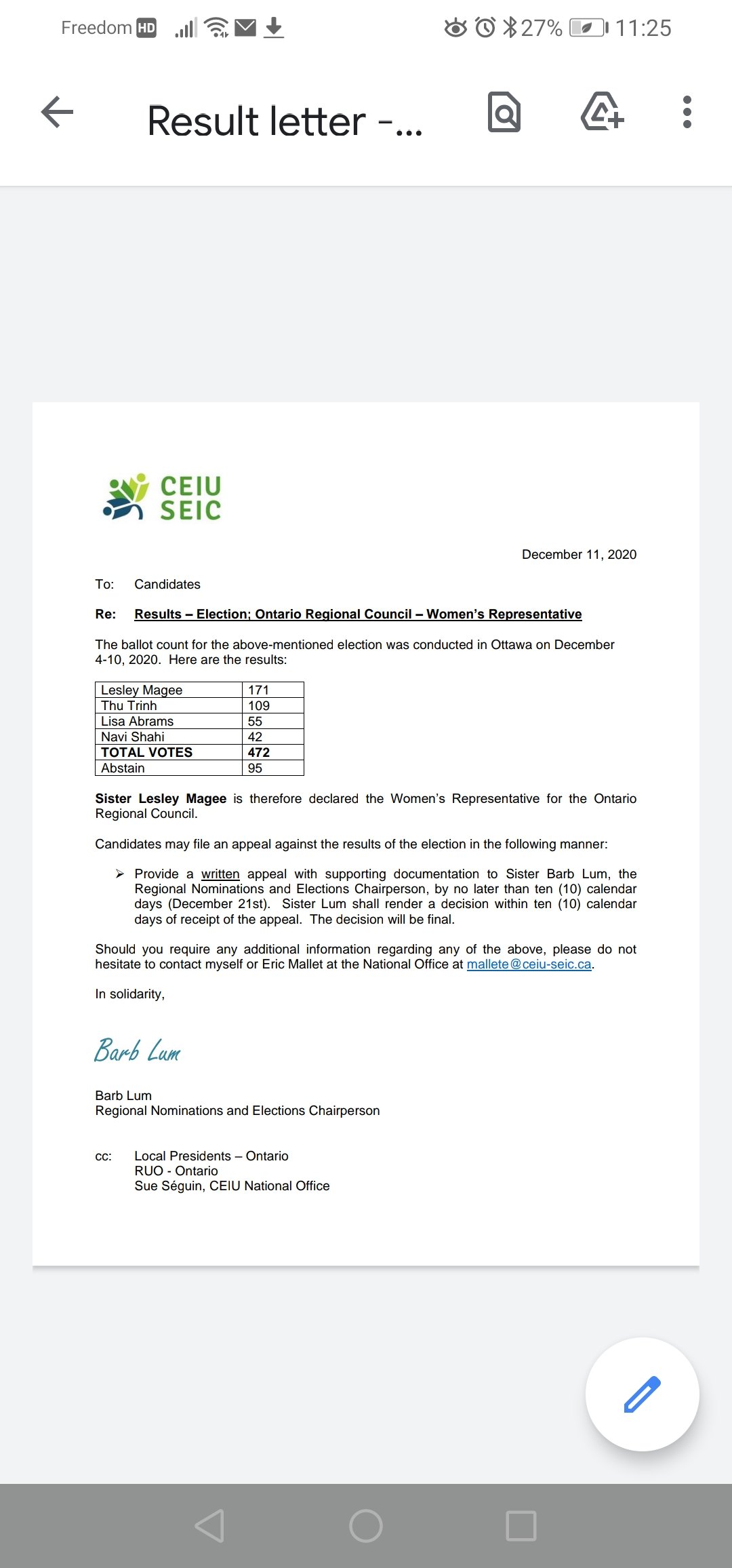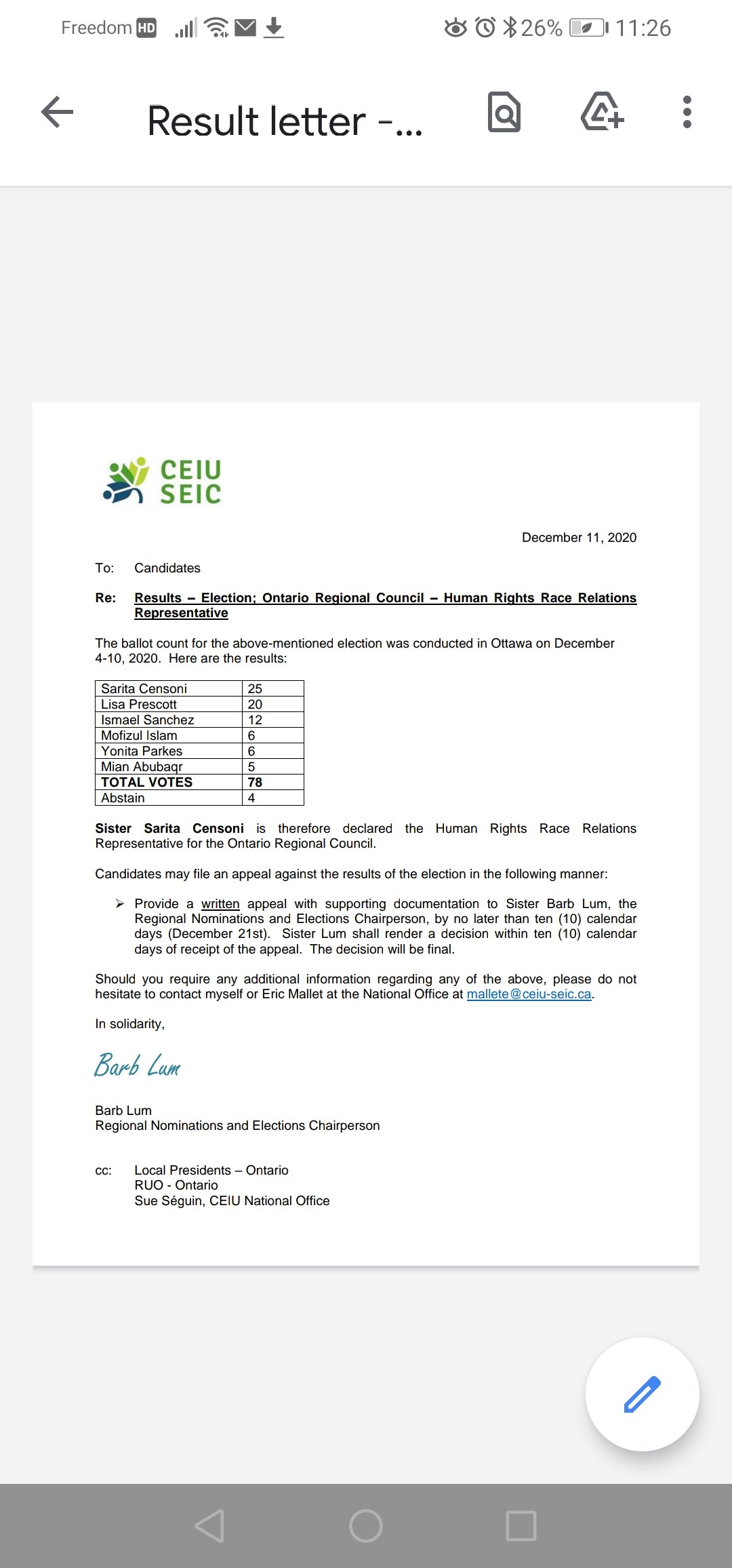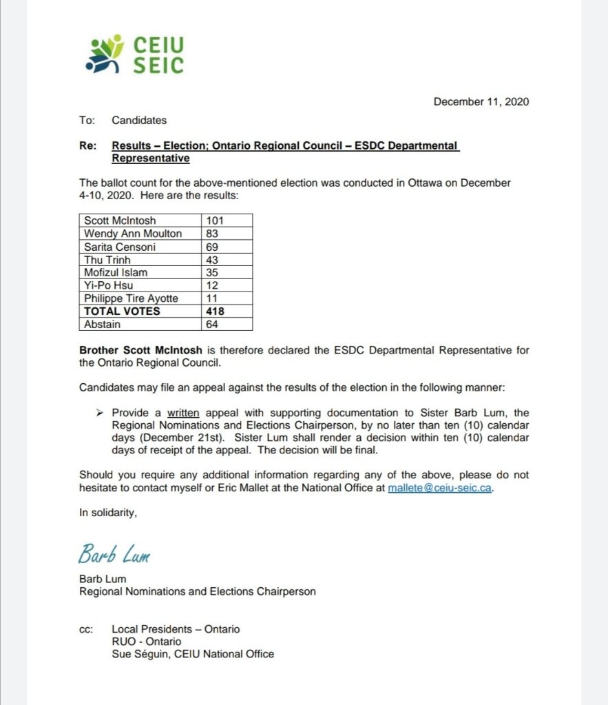 CEIU ONTARIO REGIONAL COUNCIL (ORC) RESULTS