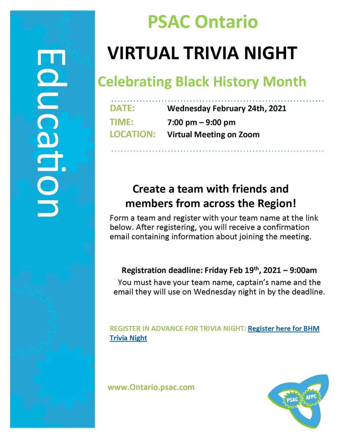 PSAC Ontario virtual trivia night Feb 24- Celebrating Black History Month