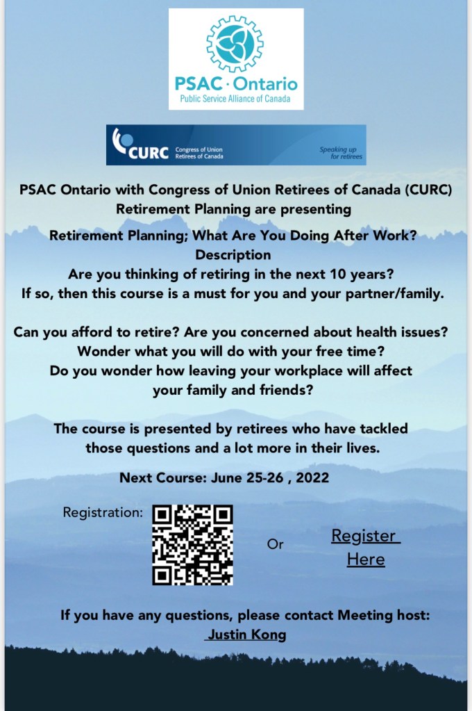 Congress of Union Retirees of Canada (CURC) – Retirement Planning June 25 and 26, 2022 – Invitation to Register