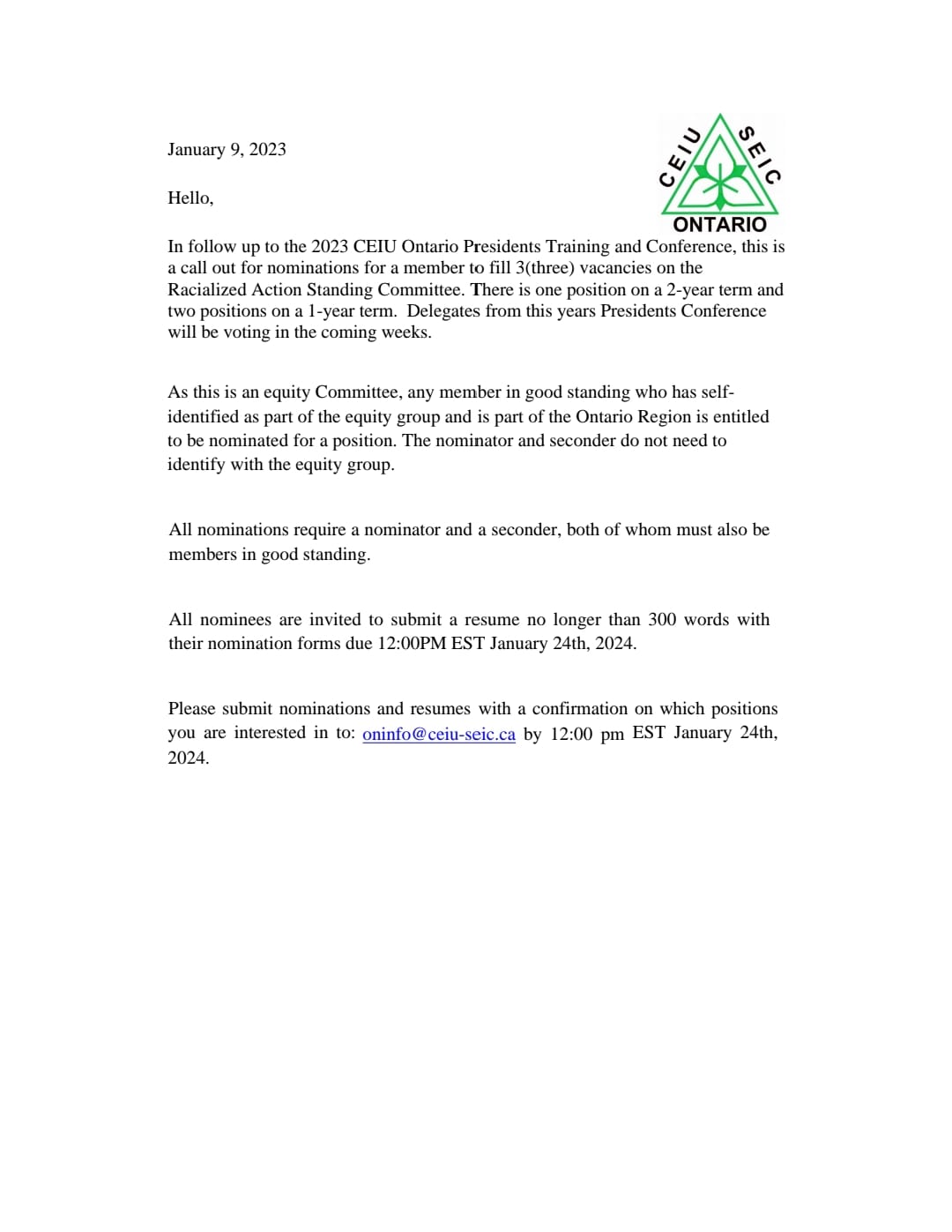 CEIU Ontario Racialized Action Committee Nomination Call Out