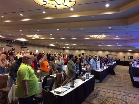 Members sing Solidarity Forever at the start of the 7th Triennial Ontario Regional Convention!