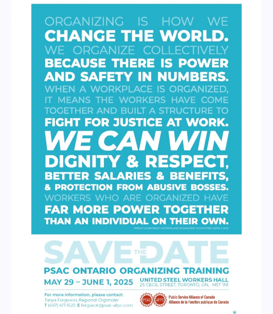In Solidarity, Craig ReynoldsRegional Executive Vice-President, OntarioPublic Service Alliance of Canada